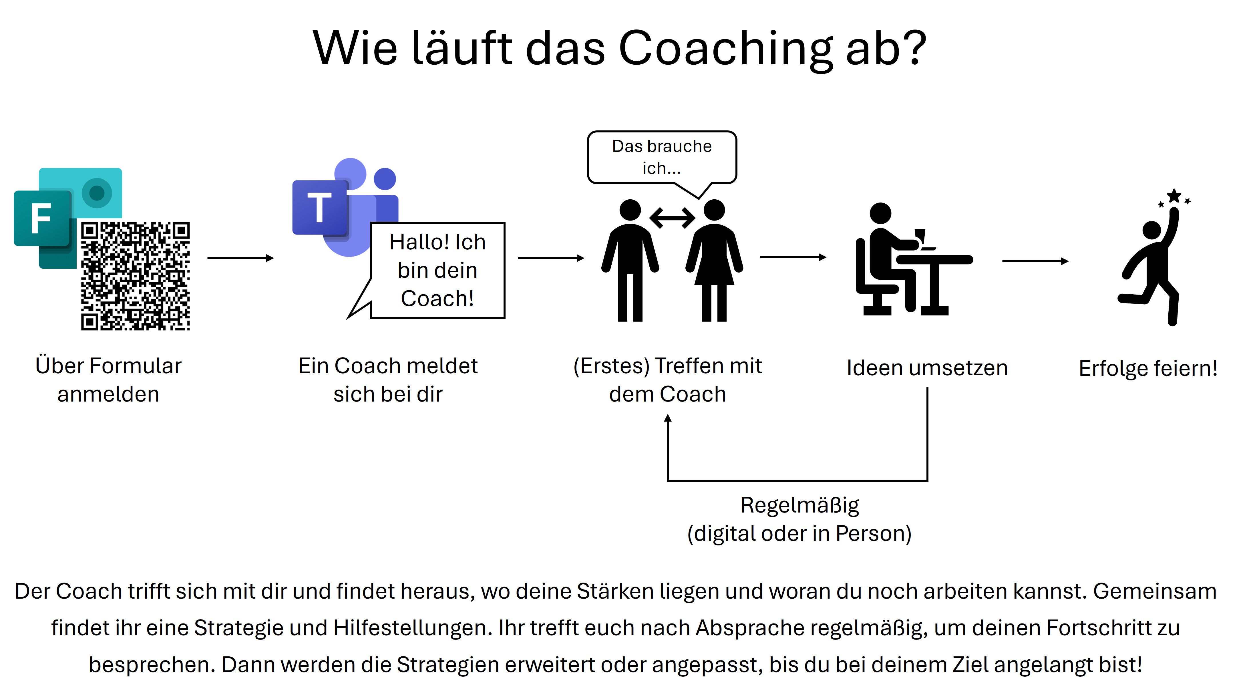 Interessierte Schülerinnen und Schüler können sich jederzeit für das Coaching anmelden. Nähere Informationen sind auf Plakaten in der Schule zu finden.