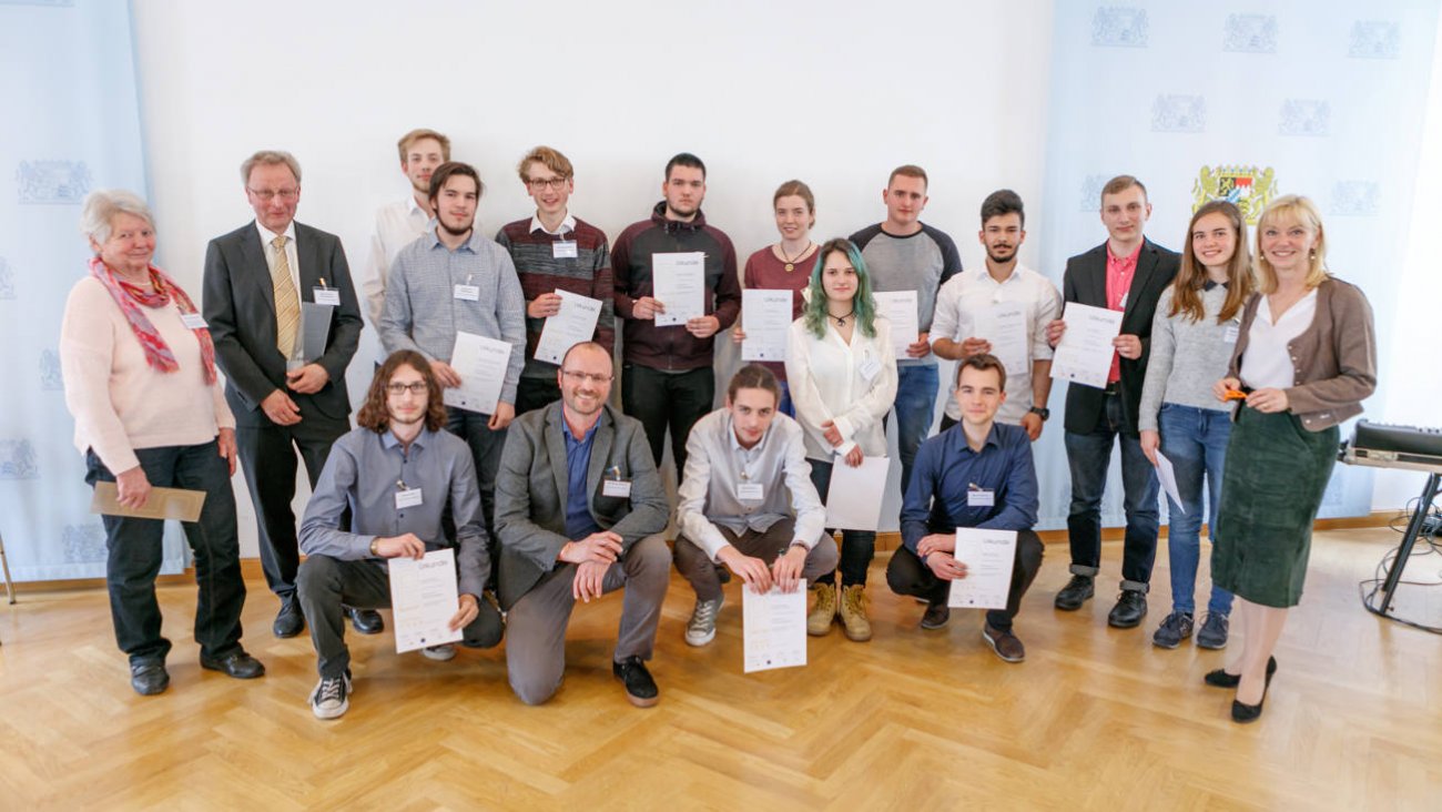 Mit der Auszeichnung erhält unser Seminar 500 Euro. Als Zeichen der Anerkennung bekommen die Holbeiner und externen Partner eine Trophäe „P-Seminar-Preis 2016/18“.