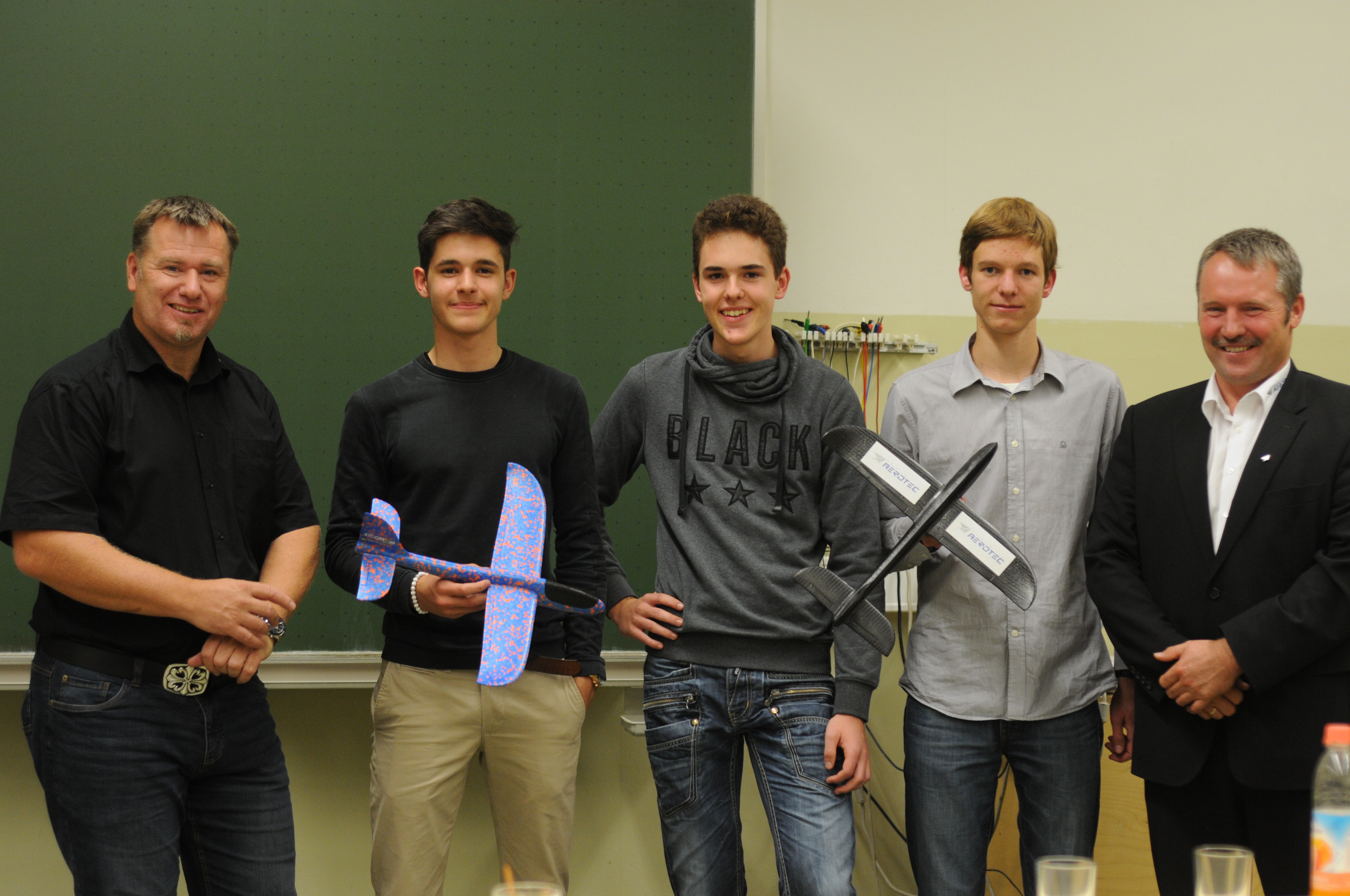 Das P-Seminar „Carbon“ baute eine Laptop-Tasche und einen Laptop Kühler aus Carbon im Labor der Universität Augsburg unter Anleitung von Fr. Anderle bzw. in der Lehrwerkstatt von Premium Aerotec unter Anleitung von Hr. May und Hr. Walzebug einen Gleitflieger. Die fertigen Produkte wurden unseren Gästen, darunter auch Fr. Anderle, Hr. May ,Hr. Walzebug und Hr. Schreck von der Siemens AG, die uns immer wieder finanziell unterstützen, vorgeführt.