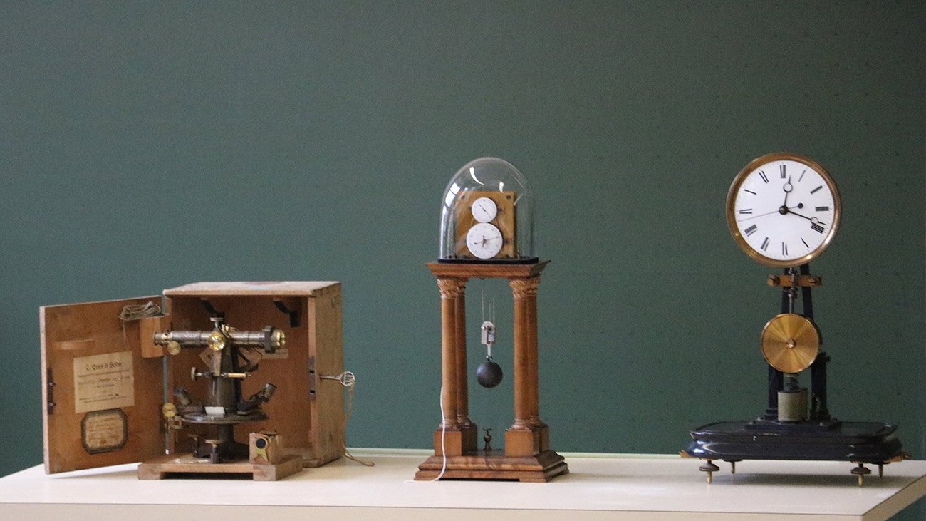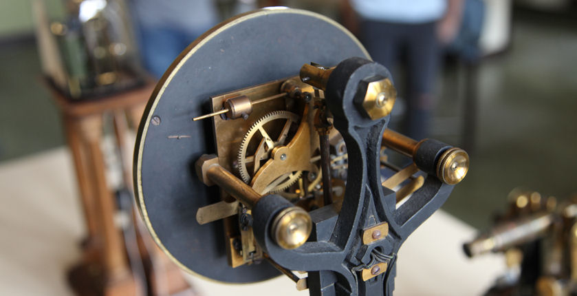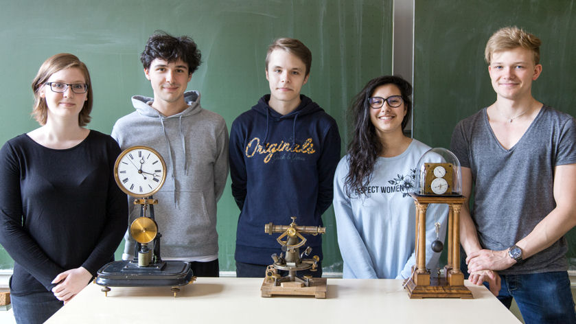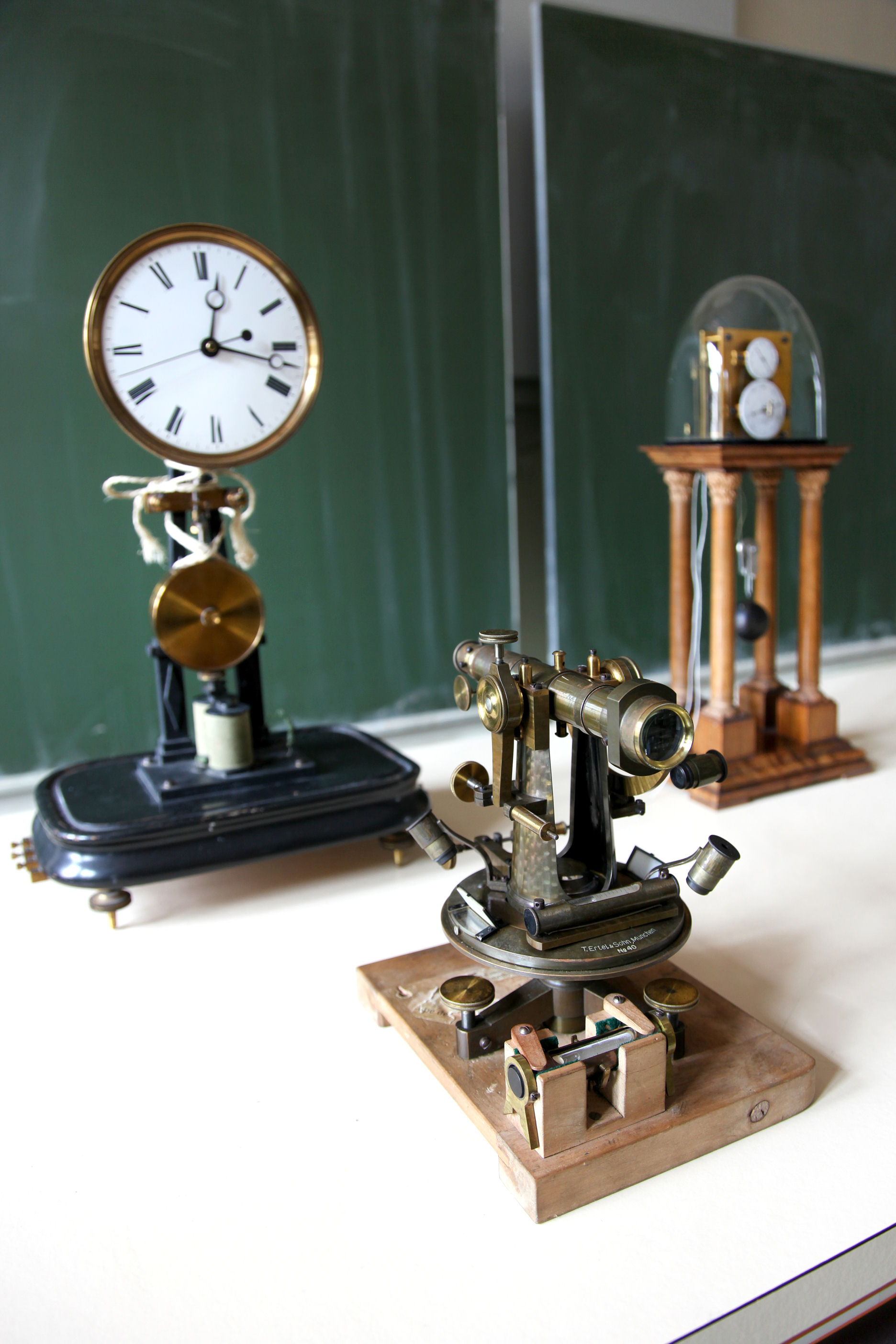 Im P-Seminar „Historische Geräte“ wurden unter fachkundiger Anleitung von Herrn Rebényi, Restaurator am Deutschen Museum München, unser Hipp`sches Chronoskop, die Hipp‘sche Schuluhr und ein Theodolit von T. Ertel & Sohn restauriert. Ihre Funktion konnte in einem Workshop am Holbein Gymnasium unter der Leitung von Herrn Rebényi, der auch unter den Gästen war, teilweise wieder hergestellt werden. Ein modernes Pendant z.B. zum Theodoliten ist eine günstige Handy App.