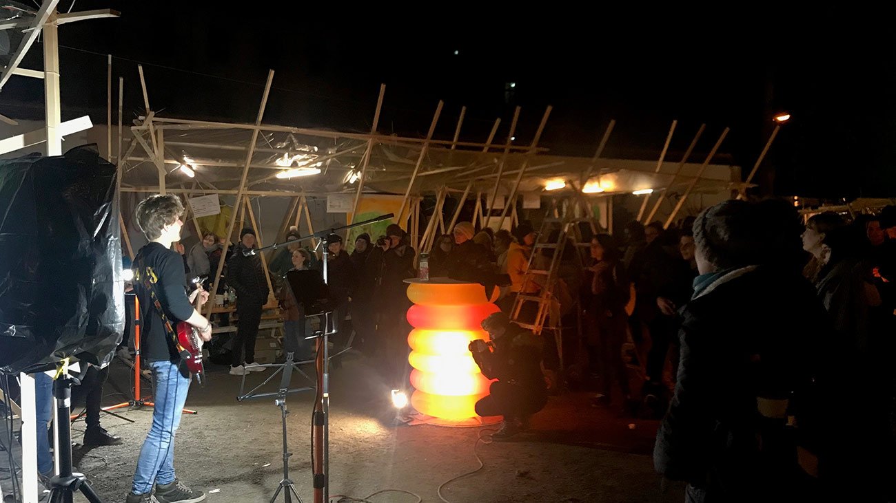 Am 20.12.18 feierten die HolbeinerInnen die Bäume der Schule mit einem bunten Spektakel auf der Grünanlage vor der Schule. SchülerInnen errichteten vormittags mit Holzlatten, Folien und bunten Lichtern vor der Schule eine Bühne, eine Bar und eine Infogalerie. Alles für eine menschenfreundliche und ökologisch wertvolle Hallstraße!