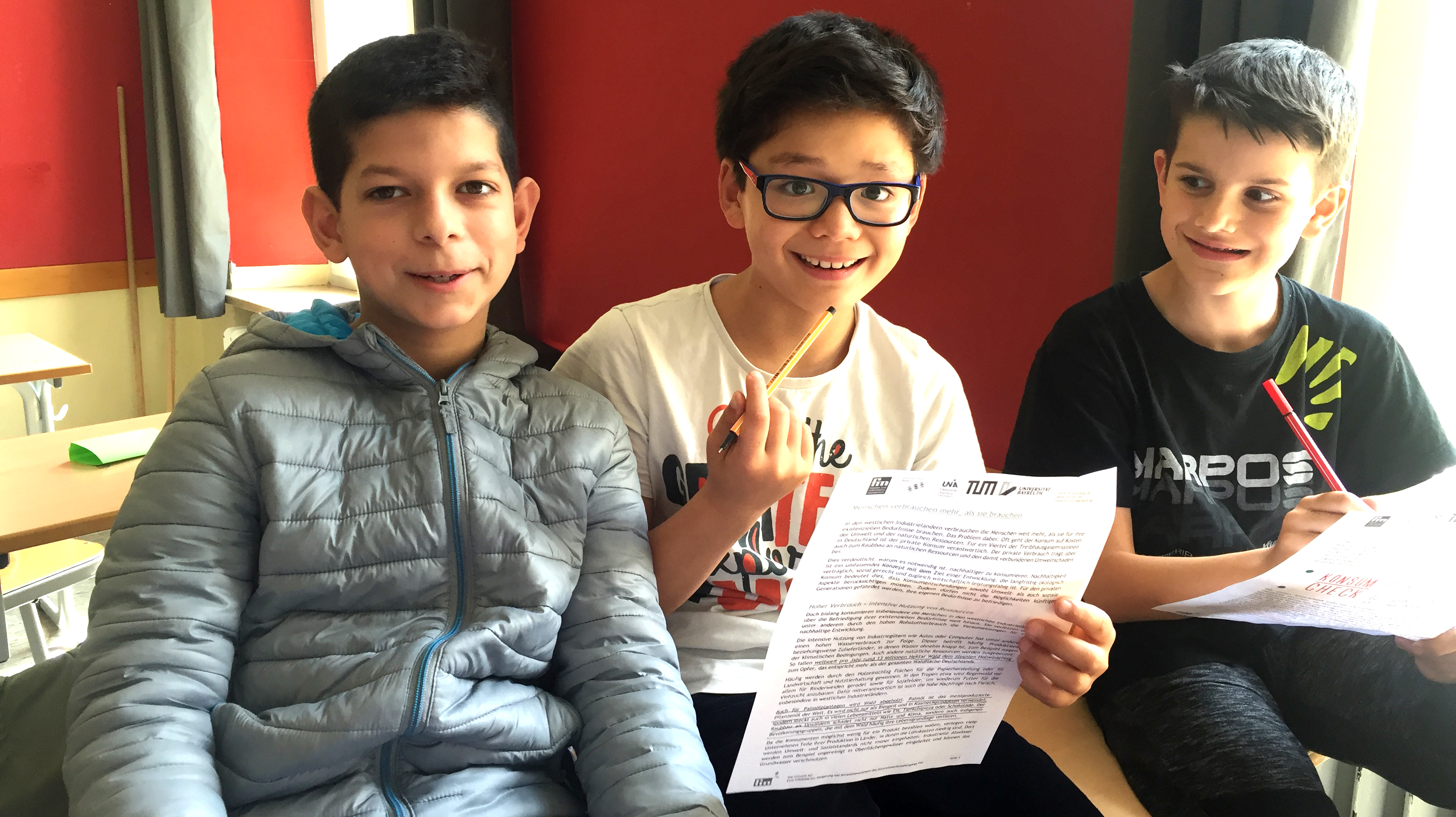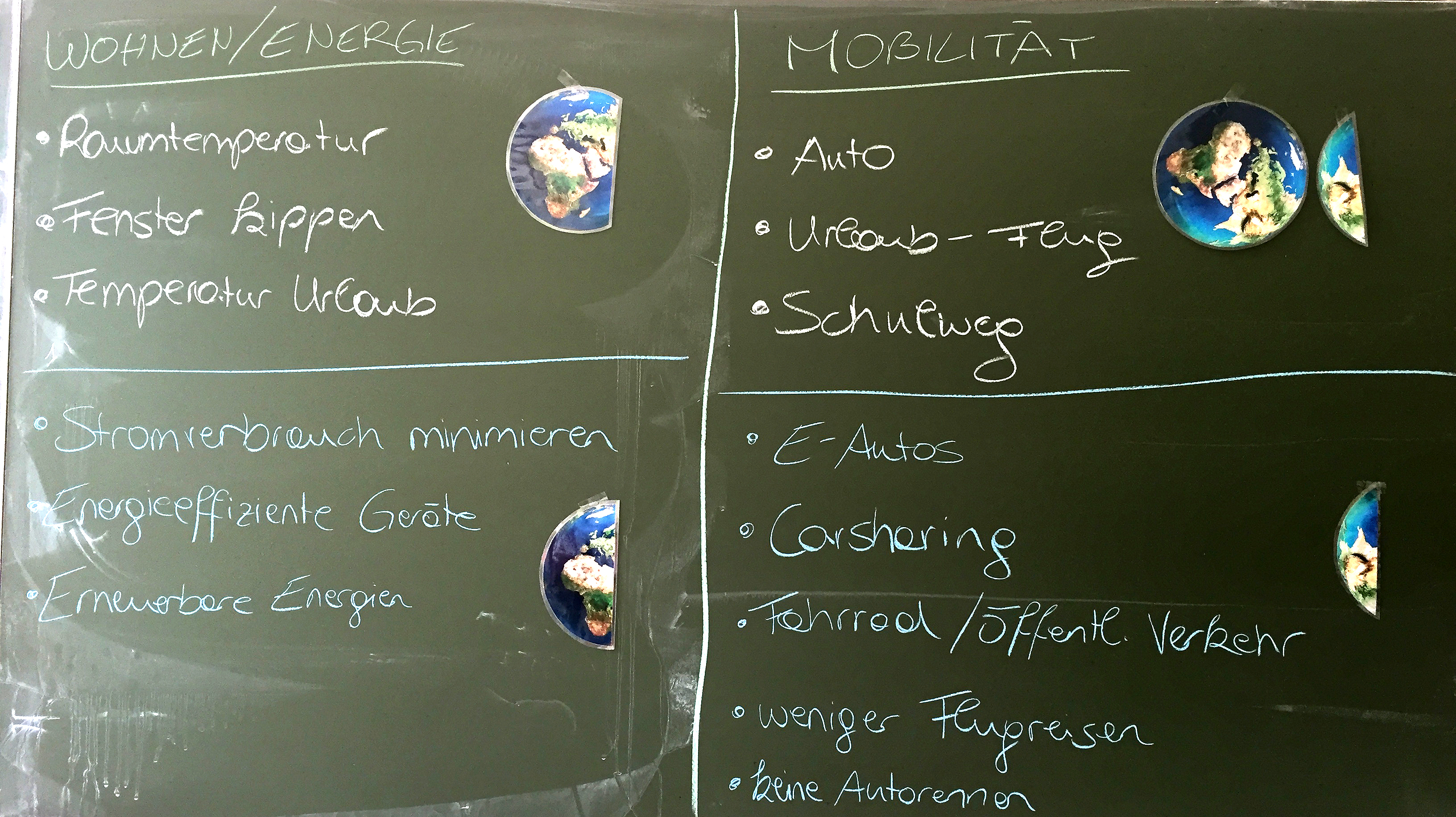 Wie wird unser ökologischer Fußabdruck wieder kleiner? Diese Frage diskutierten die Schülerinnen lebhaft. Vor allem die Bereiche Ernährung, Wohnen, Mobilität und Konsum wurden hierbei genauer unter die Lupe genommen. Die Kinder arbeiteten mit Feuereifer mit und beeindruckten die beiden Studenten mit erstaunlichem Hintergrundwissen und vielen guten Ideen. Aber klar: „Es gibt nichts Gutes, außer man tut es“, mahnten diese dann auch am Ende der Doppelstunde.