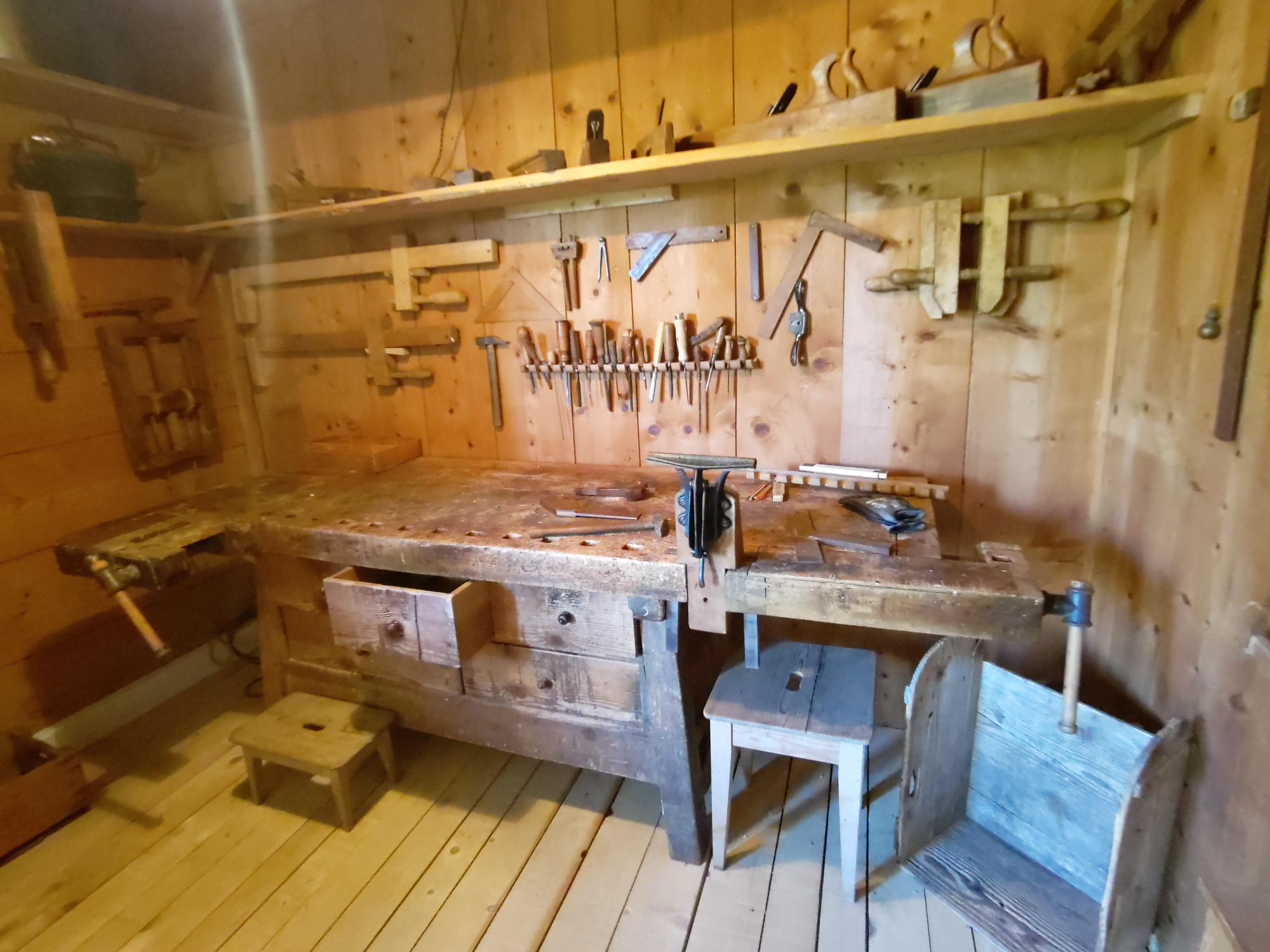Erstes Etappenziel der Exkursion war der „Werkraum“ in Andelsbuch, entworfen von dem Schweizer Architekten Peter Zumthor. Der „Werkraum“ dient als Plattform für die Förderung des regionalen Handwerks und Vernetzung von Handwerks- und Gewerbebetrieben. Der Gestaltungswettbewerb „Handwerk + Form“ präsentiert im zentralen Ausstellungsraum sowie in einem Rundgang durch historische Werkstätten und Manufakturen die eingereichten Prototypen. Innovative Handwerkskunst kann so auf dem Erkundungsweg durch den Ort neben alten traditionellen Werkstücken und Geräten entdeckt und verglichen werden. Die Vielfalt der ausgestellten Bau- und Handwerkskunst macht erlebbar, wie durch die Wertschätzung des Alten ressourcenschonende Zukunft gestaltet werden kann.