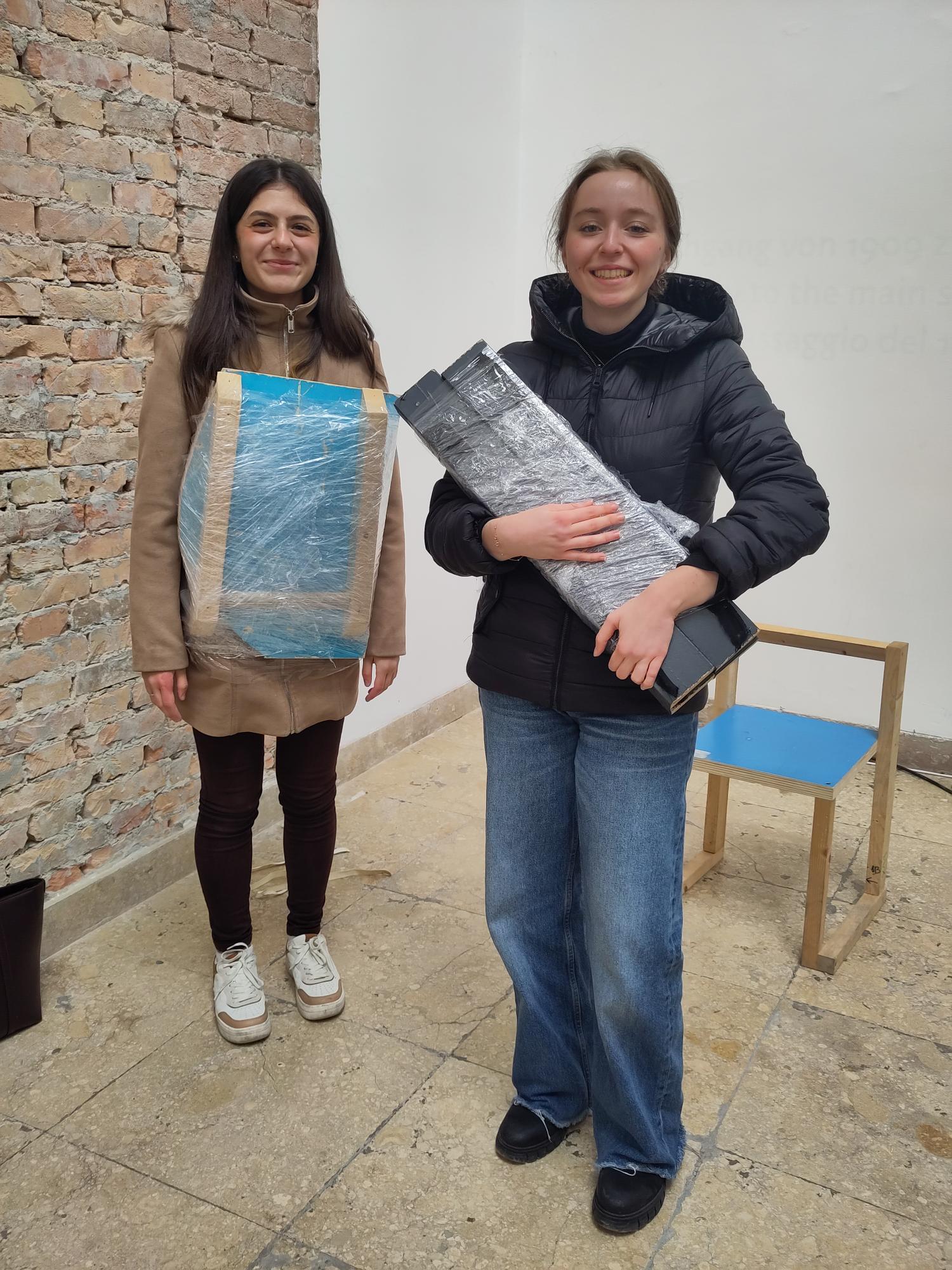 Im Deutschen Pavillon wird die Idee des zirkulären Bauens veranschaulicht. Er dient als Depotlager für das Material, das als „Müll“ von der letzten Biennale übriggeblieben war. Sortiert und digital erfasst wird der Materialfundus ein weiteres Mal genutzt. Eine große Werkstatt, ein Versammlungsraum, Küche, WC und eine große Rampe vor dem Pavillon zeigen, wie das geht. Spontan haben Schülerinnen Material für eigene Projekte mitgenommen. Jetzt hoffen wir auf drei originelle „Biennale-Möbel“. Die Teilnehmer waren sich am Ende einig, dass unsere Architek:touren unbedingt fortgesetzt werden müssen!