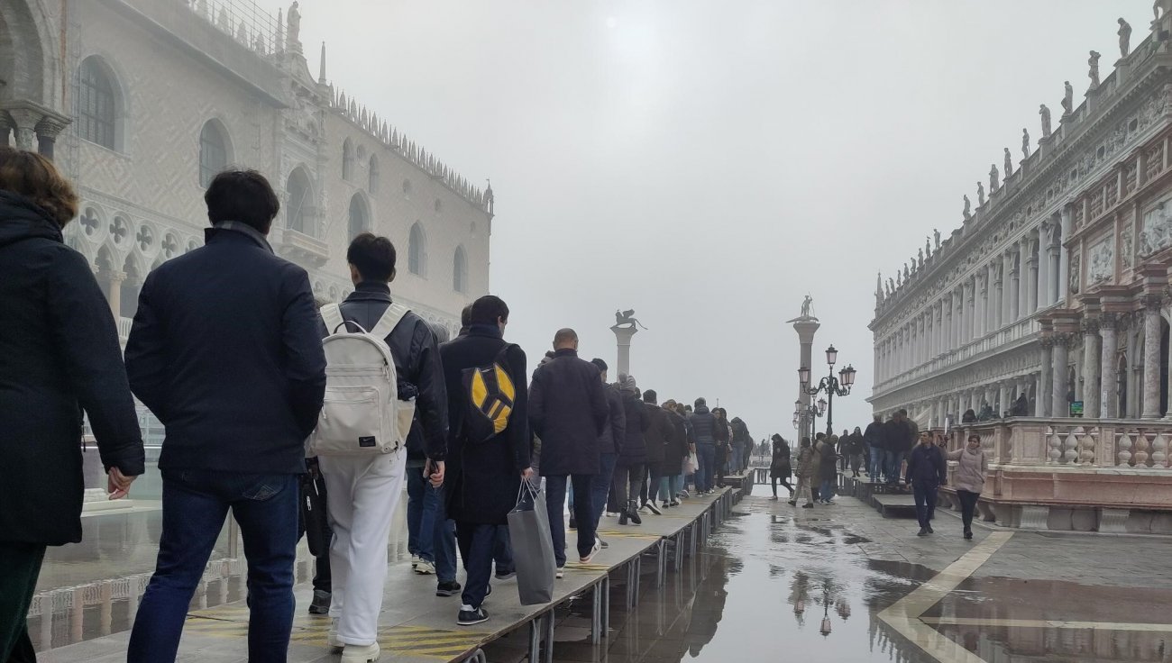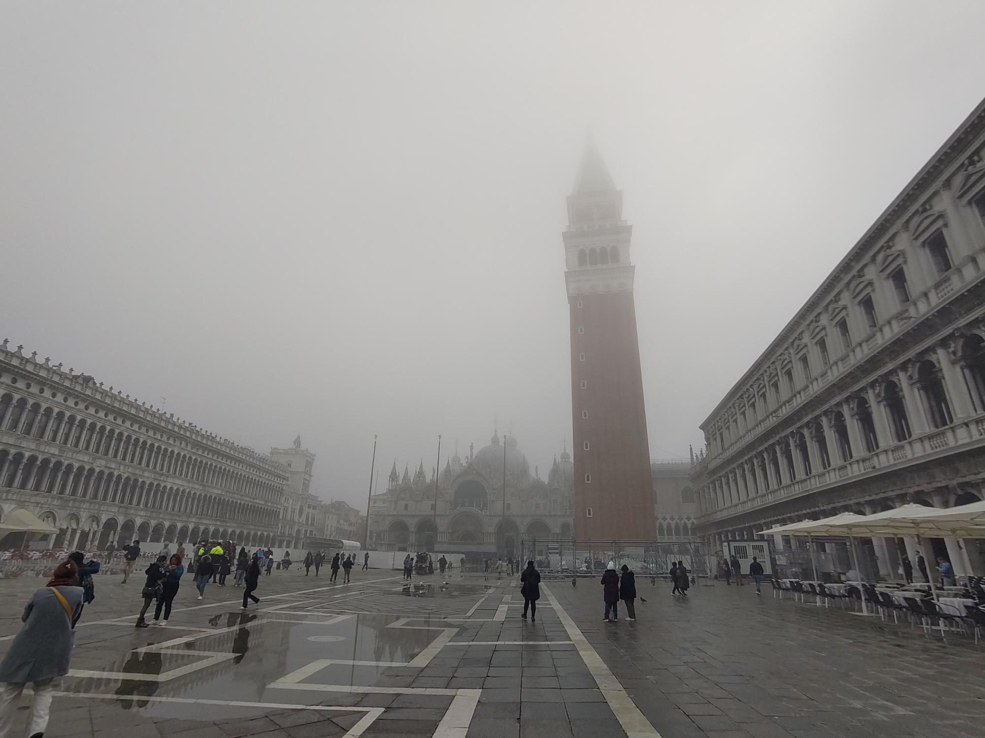 Venedig zeigte sich bei der Ankunft im dichten Novembernebel. Die wechselnden stimmungsvollen Lichtverhältnisse bei aufklarendem Himmel faszinierten. Auf dem Weg durch die Gassen der Lagunenstadt zur Unterkunft, schärfte sich auch der Blick auf die ambivalenten Reize der Lagunenstadt. Die Folgen des extremen Tourismus und des Klimawandels setzen der Stadt deutlich zu. Am Samstagabend konnte ein malerischer Sonnenuntergang bestaunt werden.