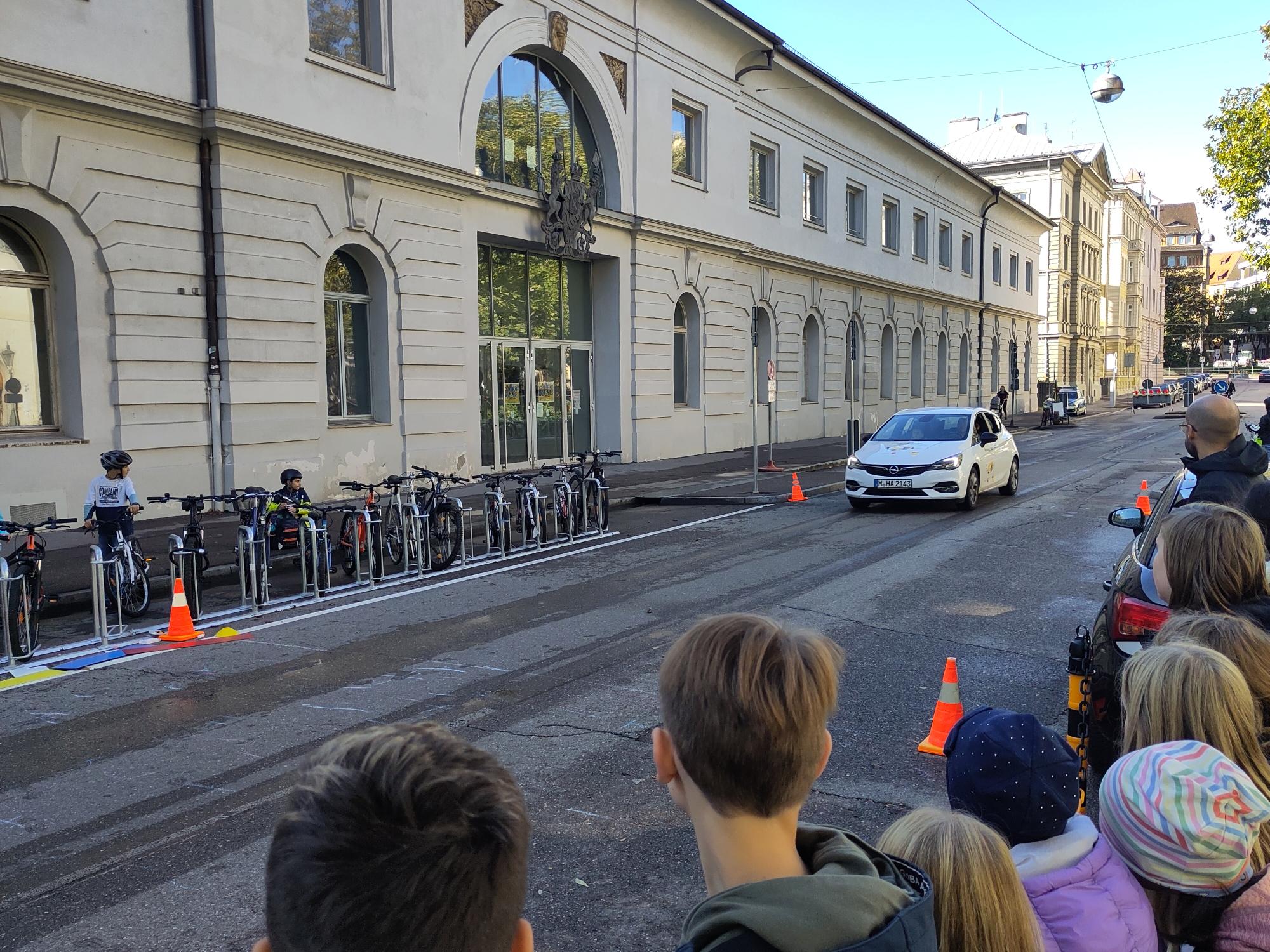 Mit Vollbremsung im Auto und Geschick am Fahrrad: Verkehrssicherheitstraining der 5. Klassen am Holbein
