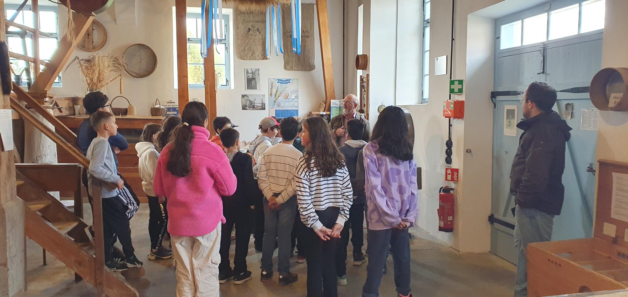 Auf ungewohnte Weise ging es am Mittwoch zu einer Mühle. Anesa und Defne erinnern sich: „Wir haben eine Traktorfahrt zu einer Mühle gemacht, in der wir gelernt haben wie Mehl hergestellt wird und in der wir Haferflocken selbst hergestellt haben. Die Fahrt dorthin war sehr aufregend und abenteuerlich, weil die Äste oft auf den Anhänger schlugen, auf dem wir Kinder der 5A standen.“