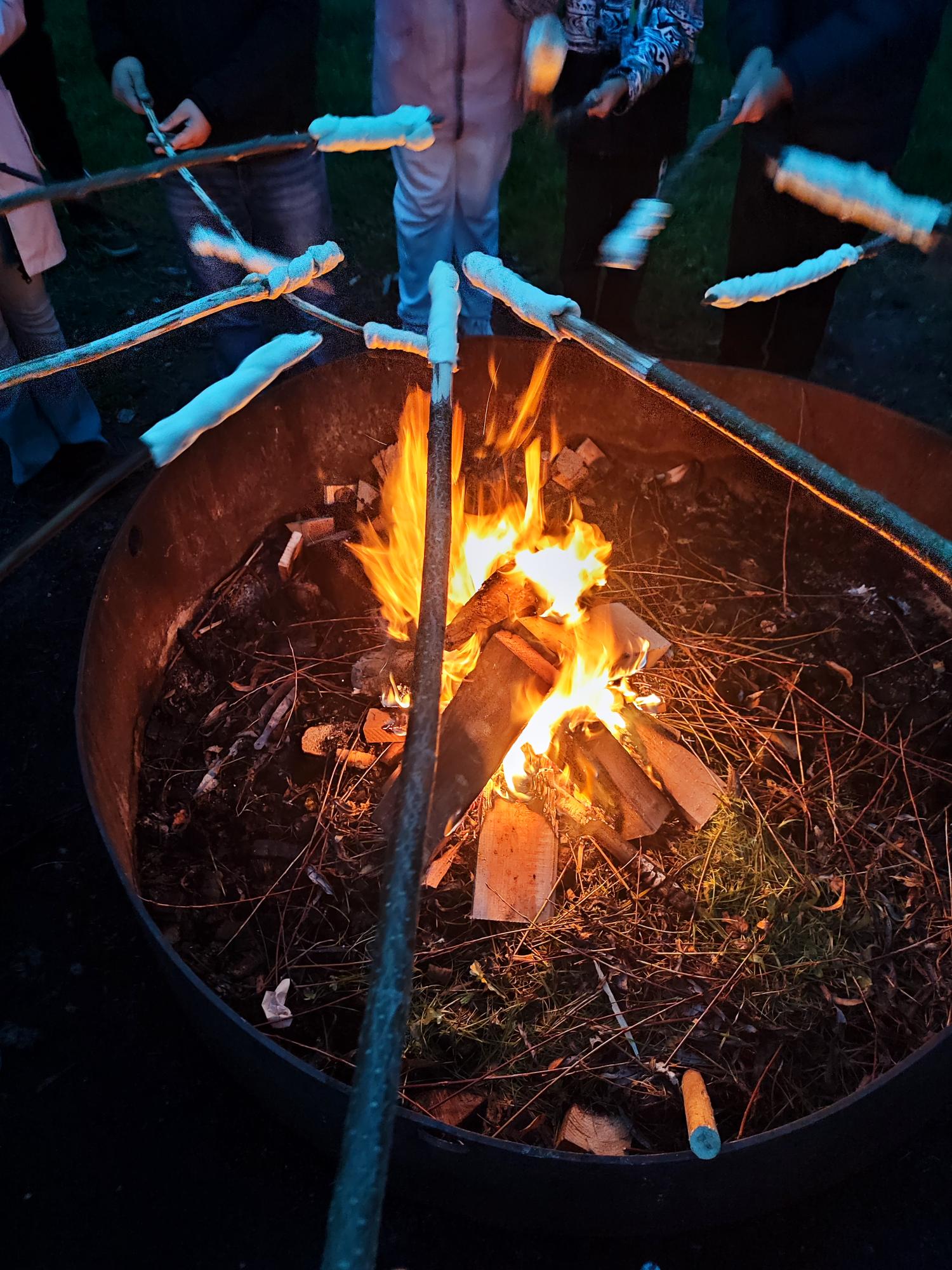Auch Stockbrot am Lagerfeuer durfte nicht fehlen. Nalia und Ardena berichten: „Als Überraschung machte uns die nette Bäuerin einen Stockbrotteig. Herr Hartmann hat uns ein Feuer entfacht. Wir nahmen Stöcke und wickelten den Teig um die Stockspitze und hielten die Stöcke über das Feuer. Nach viel Geduld und einigen Lagerfeuerliedern genossen wir ein warmes und krosses Stockbrot. Das war sehr knusprig und lecker.“