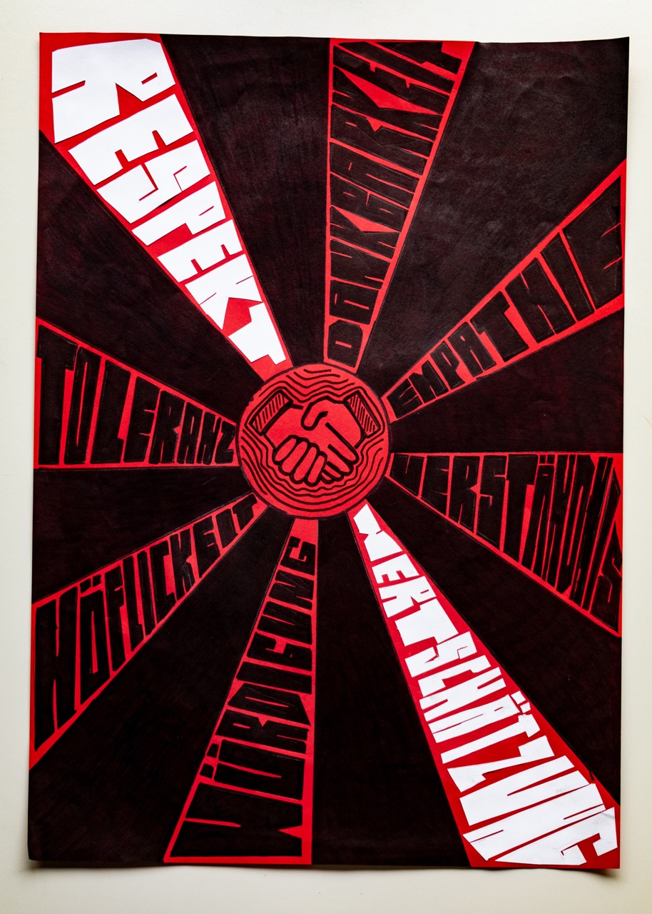 Um die Werte im Schulalltag sichtbar zu machen, beschäftigten sich in den letzten Monaten alle unsere Klassen intensiv mit jeweils einem Wert. Ziel war es im Rahmen eines Wertewettbewerbs einen Wert anschaulich auf einem Plakat darzustellen. Die Ergebnisse sind im Kreuzgang sichtbar! Schaut sie euch gerne an! Wir haben wahre Künstlerinnen und Künstler unter unseren Schülern!