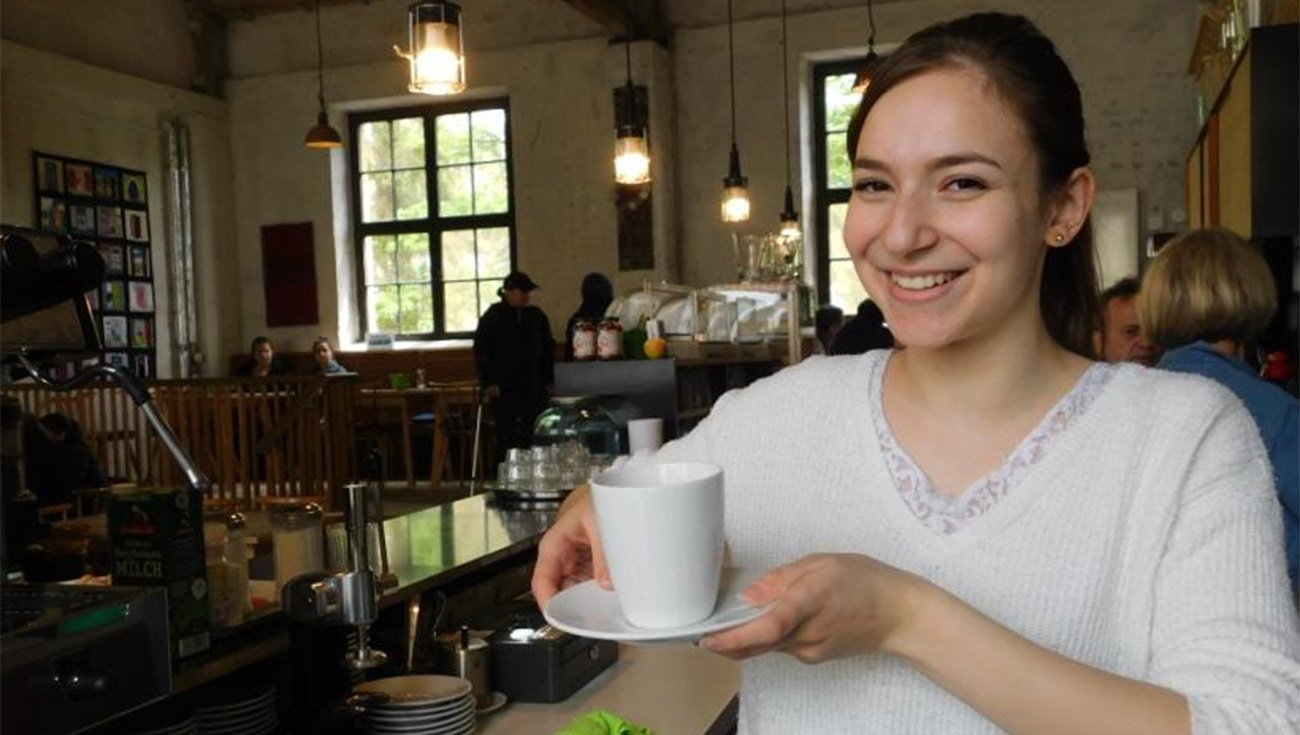 Organizing a new experiment was almost impossible at that time. Instead, Mr. Körner offered her a five-day lasting internship in August in his café “Tür an Tür”. This is a branch of the society “Tür an Tür”, which has supported people of immigrant communities in their search for flats for 25 years. One of the committed founders is Mr. Körner himself. In the café, refugees prepare themselves with voluntary workers of the “Zentrum für interkulturelle Beratung (zib)” for apartment tours.