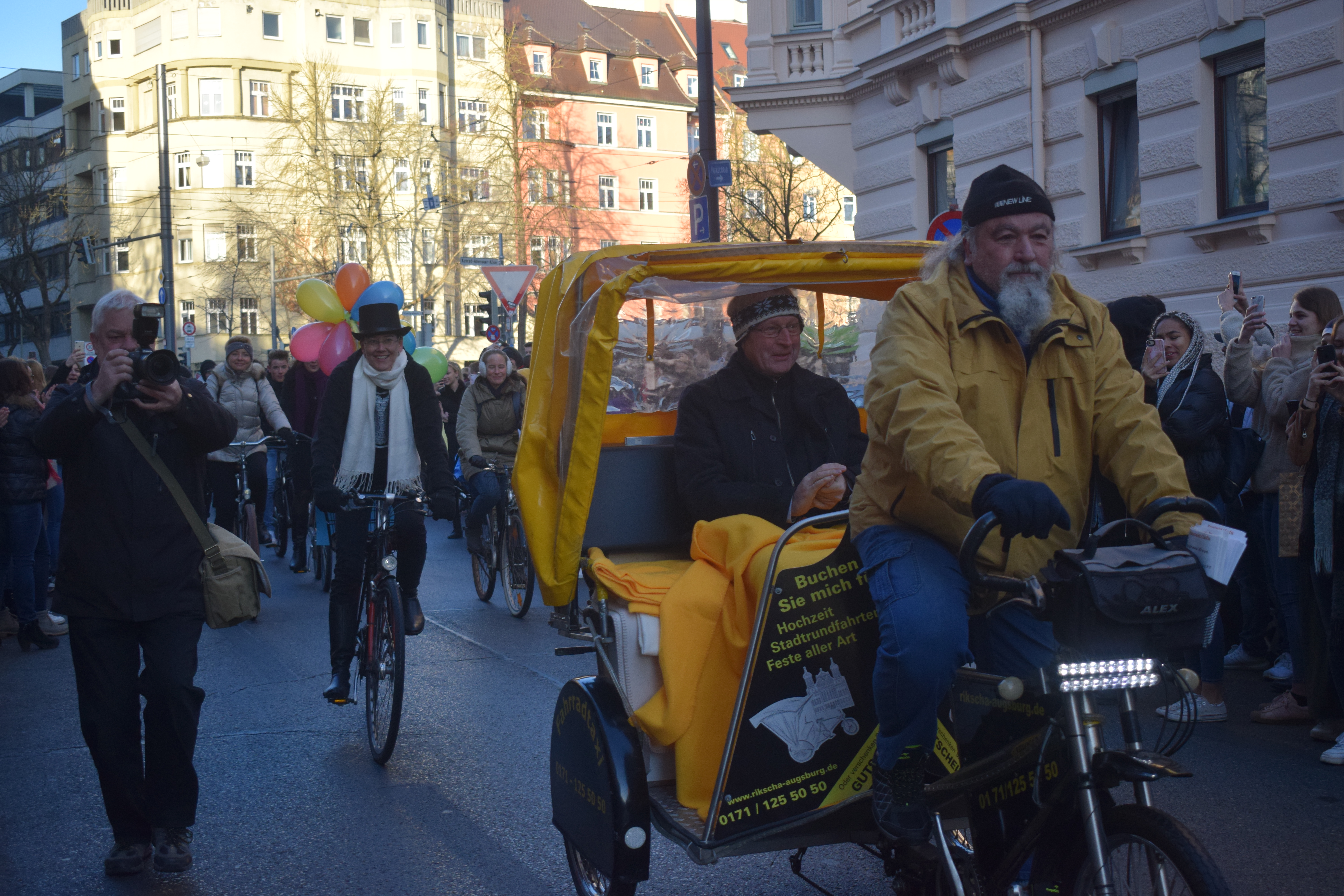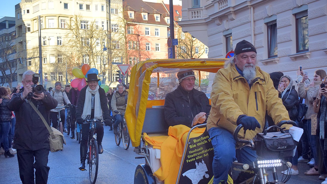 Niemand, der diese Schule momentan (als Schüler*in) besucht, war schon auf der Welt, als Herbert Schuhknecht sie das erste Mal als Schulleiter betrat. 1991 war das, verdammt lange ist es her – genau genommen 29 Jahre – und am 15. Februar 2019 hat er sie zum letzten Mal als Schulleiter betreten. Angesichts dieser langen Zeit und der Tatsache, dass mit Herrn Schuhknechts Pensionierung eine Ära zu Ende ging, hätte man niemandem eine gewisse Schwermut verdenken können; doch von Trauer war nicht viel zu merken, als der alte Schulleiter vor genau einem Jahr mit lautem Applaus von der gesamten Schule („Laut“ ist ja bekanntlich das, was Holbeiner am besten können) begrüßt wurde, während er auf einer sonnenblumengelben Rikscha in die Hallstraße gefahren wurde.