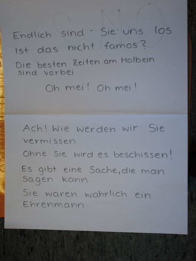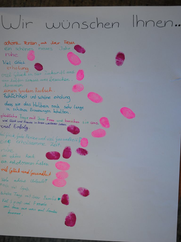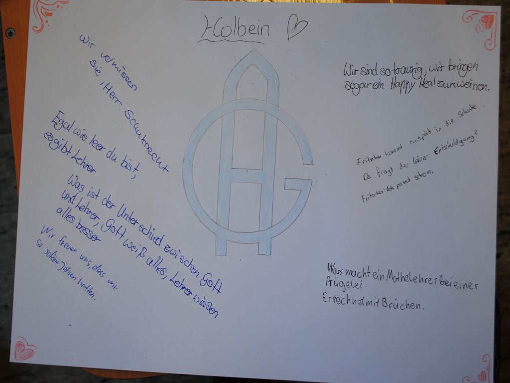 Jedes Jahr wird am Holbein-Gymnasium der Deutsch- französischen Freundschaft gedacht. Die Fachschaft Französisch am Holbein- Gymnasium veranstaltet mit Schülerinnen und Schülernen für Ober- und Unterstufe Gedenkmomente, die von den interessierten jungen Leuten gerne wahrgenommen werden. Dabei arbeiten Ober- und Unterstufenschüler zusammen und halten die Erinnerung an die Freundschaft der beiden Länder am Leben.