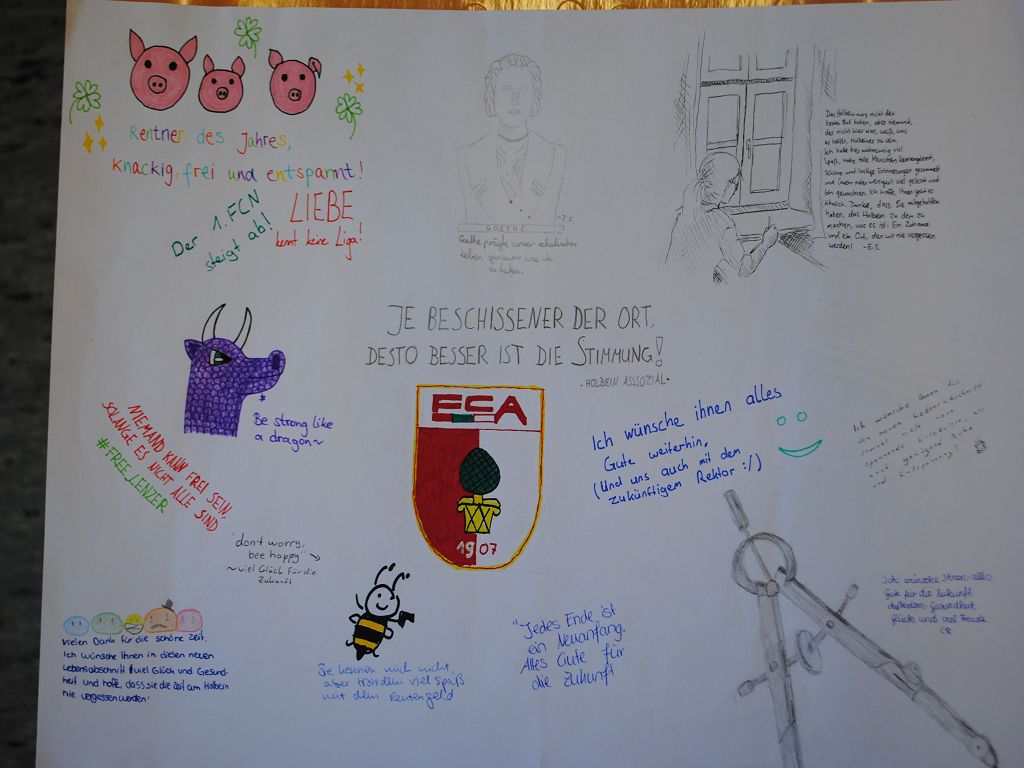 Kooperation mit der Uni Augsburg: Alle Q11-Schüler arbeiteten mit elf Studierenden und Prof. Dr. Voigt vom Lehrstuhl Philosophie zusammen: Wie kann ein freies, gerechtes und erfüllendes Miteinander aussehen?