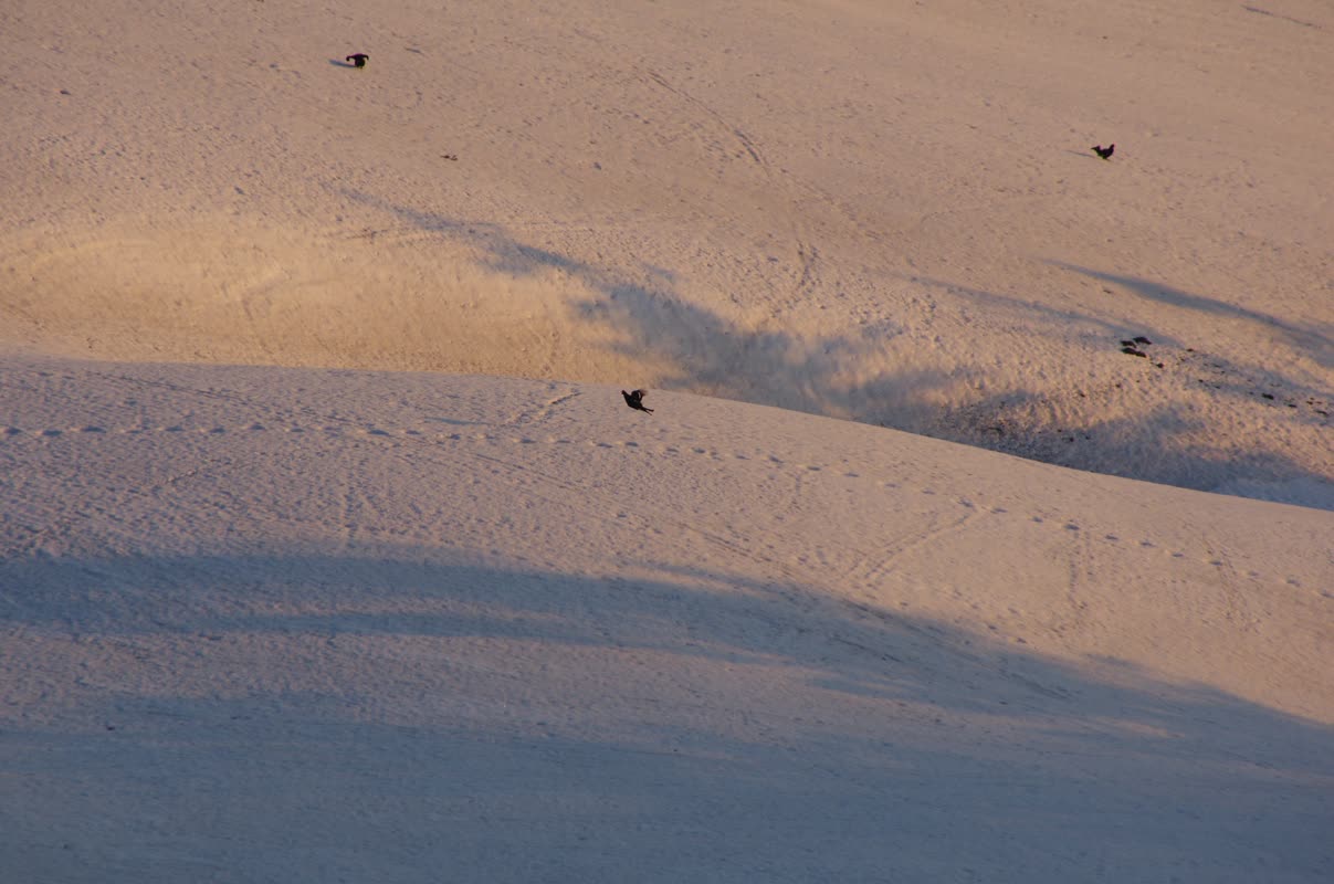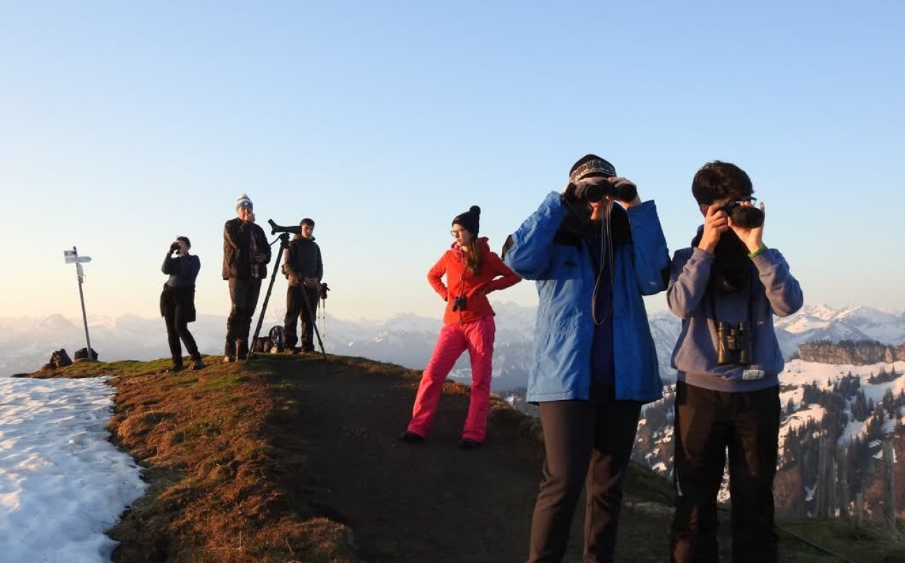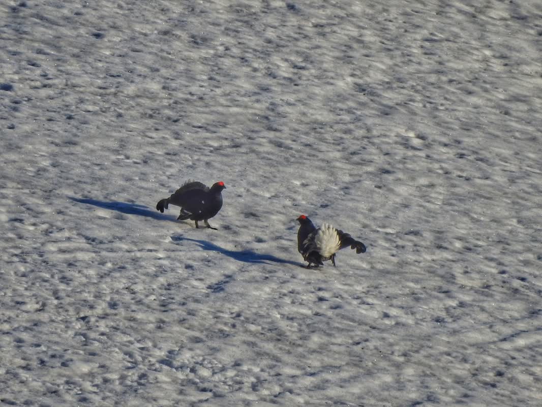 Nach einer knappen Stunde waren schon die ersten Birkhühner zu sehen und die Faszination war riesig. Ausgestattet mit Ferngläsern und Spektiven hatten die Teilnehmer die Möglichkeit – oder besser gesagt: das Privileg – 12 von diesen äußerst seltenen Tieren zwei Stunden lang aus einer Entfernung von ungefähr 200 Metern zu beobachten, bis sich diese schließlich zurückgezogen haben. Oft kam es dabei zu kleineren „Kämpfen“ zwischen den Tieren, womit festgestellt werden sollte, wer der Stärkere und somit der „Boss“ auf diesem Gebiet ist und natürlich um die Weibchen zu beeindrucken.